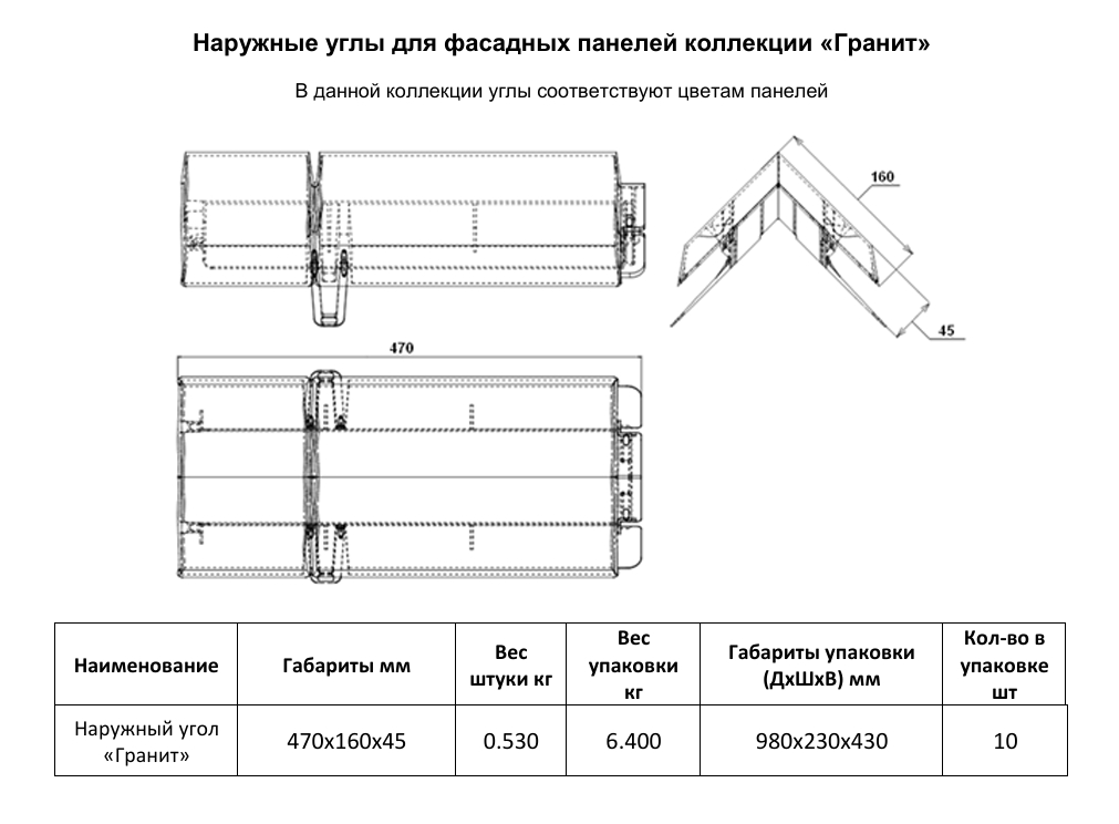 Используется для закрытия вертикальных торцов фасадных панелей на внешних углах здания. Полностью сочетаются с фасадными панелями коллекции Гранит. Может использоваться для обрамления оконных и дверных проемов.