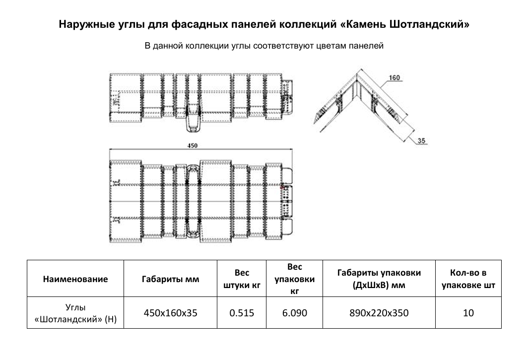 Используется для закрытия вертикальных торцов фасадных панелей на внешних углах здания. Полностью сочетаются с фасадными панелями коллекции Камень Шотландский. Может использоваться для обрамления оконных и дверных проемов.