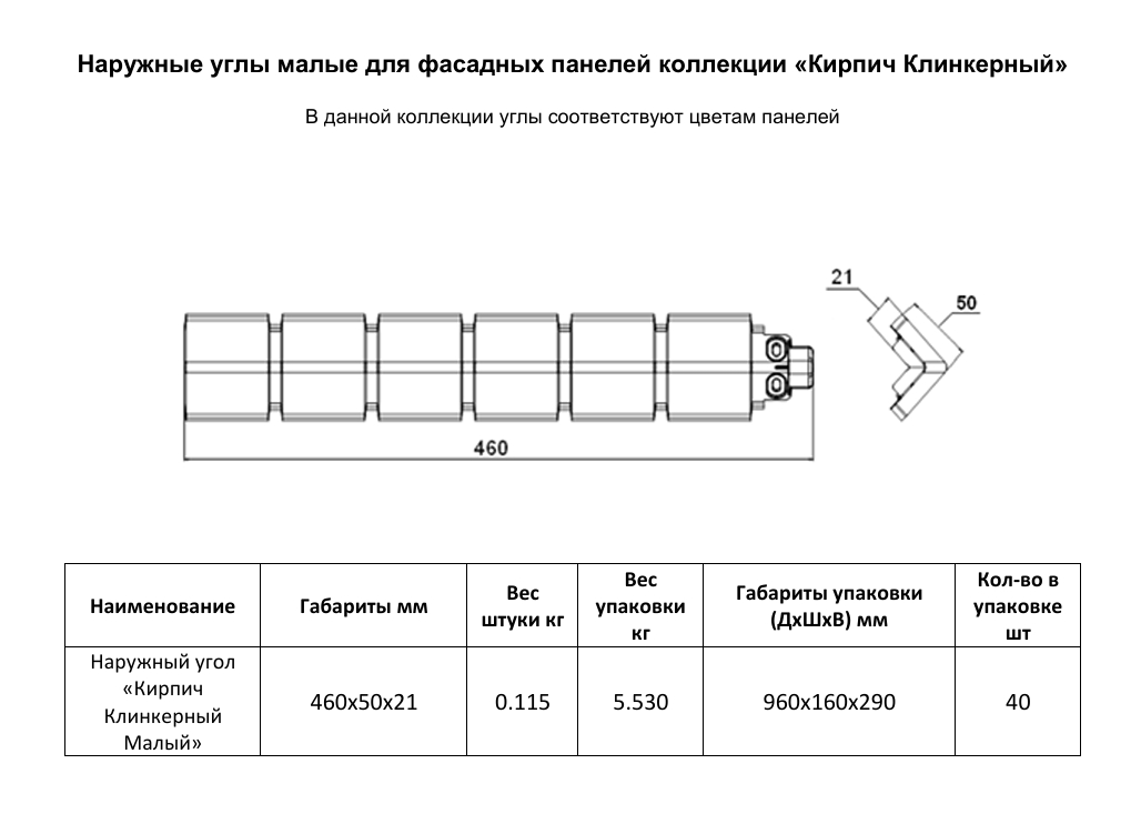 Используется для закрытия вертикальных торцов фасадных панелей на внешних углах здания. Полностью сочетаются с фасадными панелями коллекции Кирпич клинкерный. Может использоваться для обрамления оконных и дверных проемов.