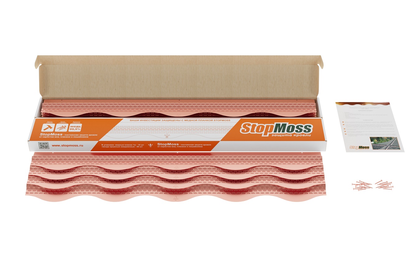 Медная планка StopMOSS – постоянная защита кровли от наростов мха, плесени и лишайников.