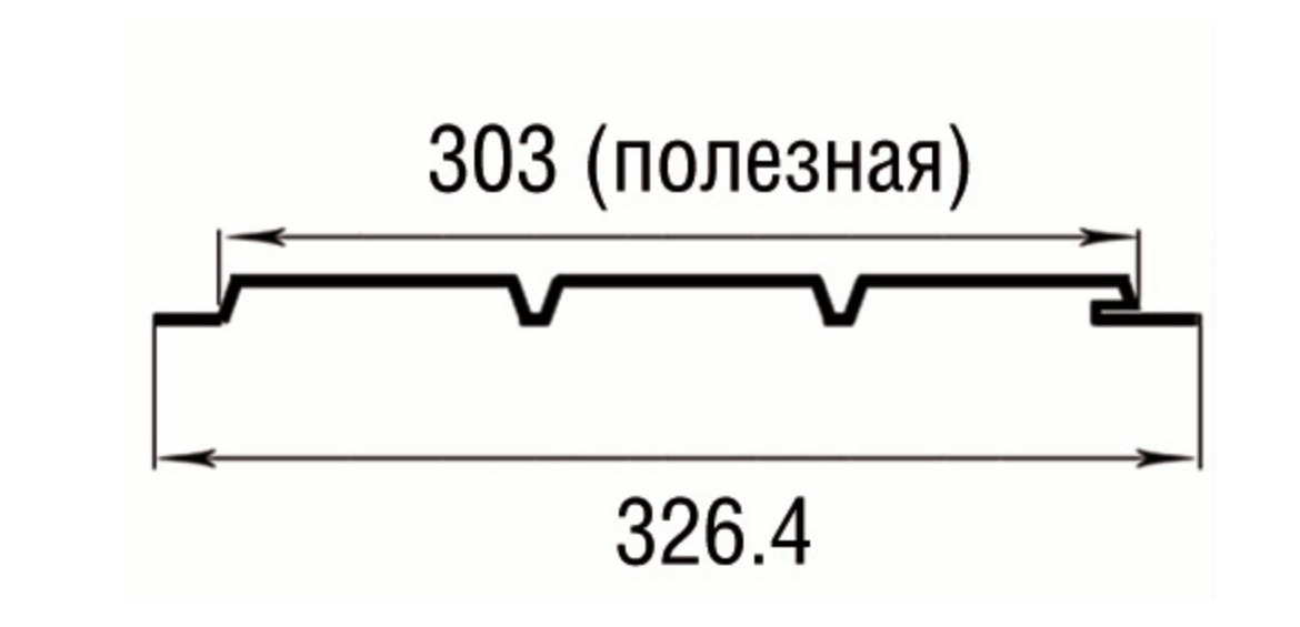 Софит без перфорации. Длинна панели 2,4 м, габаритная ширина 326 мм, полезная ширина 303 мм.