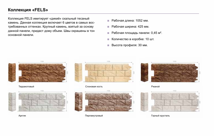Фасадные панели Docke FELS имитируют дикий скальный тесаный камень. Колористическая гамма коллекции включает 6 цветов в самых востребованных оттенках. Крупный камень, взятый за основу панели, придаст дому объем. Швы окрашены в тон основной панели.