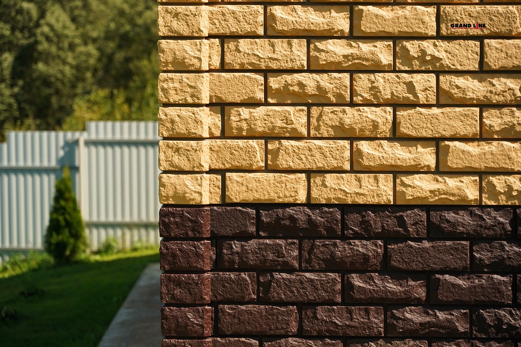 Фасадные панели Колотый камень коллекции Design Plus (Дизайн Плюс) окрашены многослойным способом с возможностью выбора цвета шва: темно-бежевый (в цветах Корица и Кофе), в белом (в цвете Гранит) и черном (в цвете Трюфель).