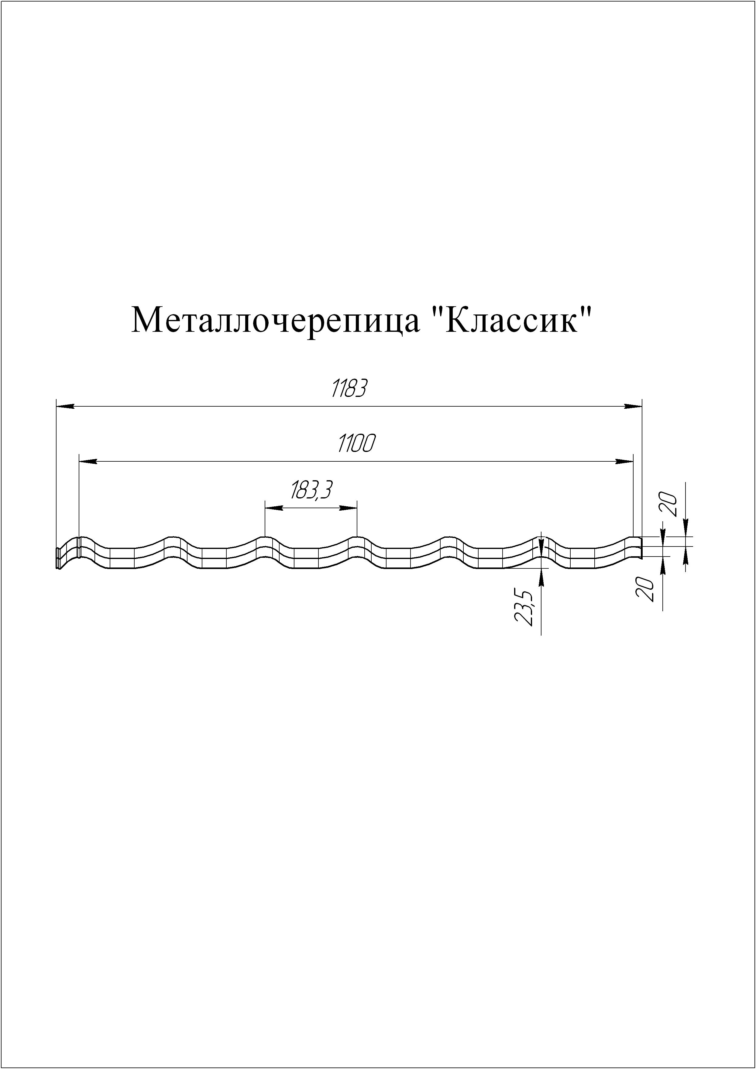 Гармонично смотрится как в сочетании с самим зданием, так и с природным окружением. Листы профиля Classic имеют стандартную габаритную ширину 1,183 м., длина, за исключением запретных длин, производится любая в диапазоне от 0,5 до 8 м.