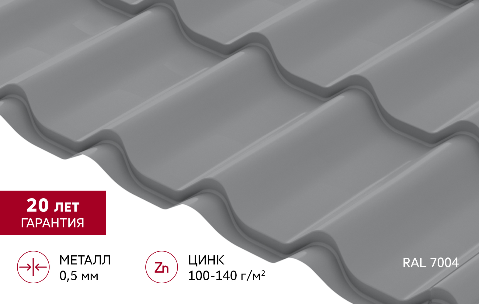 Grand Line Металлочерепица Классик Satin 0,5 мм Ral 7004