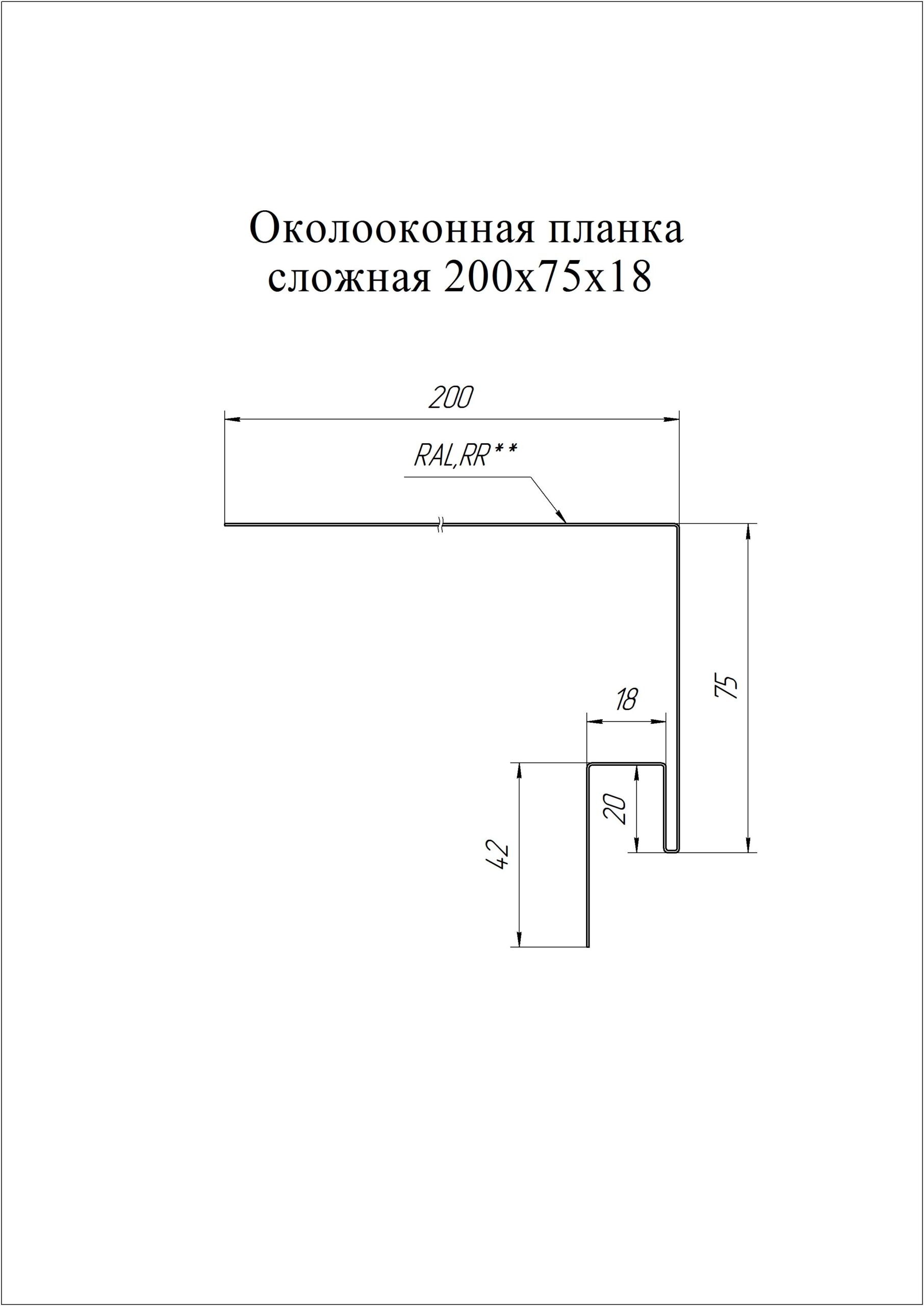 Grand Line: Планка околооконная сложная 200х75х18 (j-фаска) L=3м, Pe 0,45мм Ral 7004
