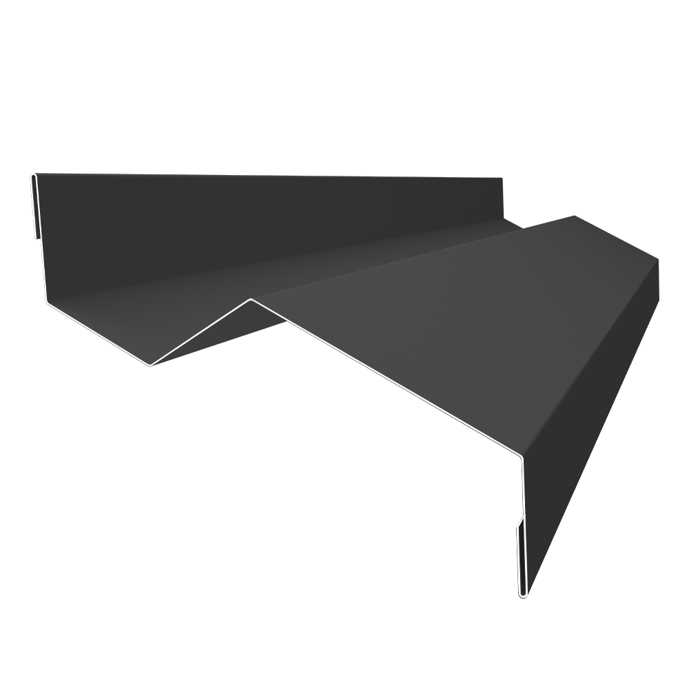 Планка для примыканий в накладку служит для гидроизоляции примыканий кровли к стенам здания и дымоходным и вентиляционным трубам, используется совместно с нижней планкой, стык со стеной обязательно обрабатывается герметиком. Длина планки 2м.