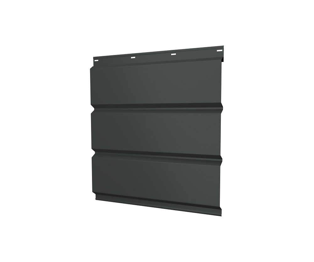 Матовый металлический софит без перфорации для подшивки свесов кровли, может применяться в для отделки потолков в т.ч. террас, беседок, крылец. Софит GL производится под заказ в диапазоне длин от 0,2 до 6 метров, с шагом один сантиметр, площадь панели рассчитывается по полной ширине 357 мм, полезная ширина панели составляет 326 мм. За заказы менее 25 кв.м. может взимается наценка.