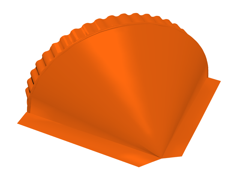 Конусная заглушка полукруглого конька устанавливается на торцах наклонных коньков – хребтов, помимо эстетической функции защищает от задувания в подкровельное пространство снега, дождя, пыли. Заглушка совместима только с полукруглым коньком Grand Line.