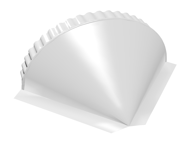 Конусная заглушка полукруглого конька устанавливается на торцах наклонных коньков – хребтов, помимо эстетической функции защищает от задувания в подкровельное пространство снега, дождя, пыли. Заглушка совместима только с полукруглым коньком Grand Line.