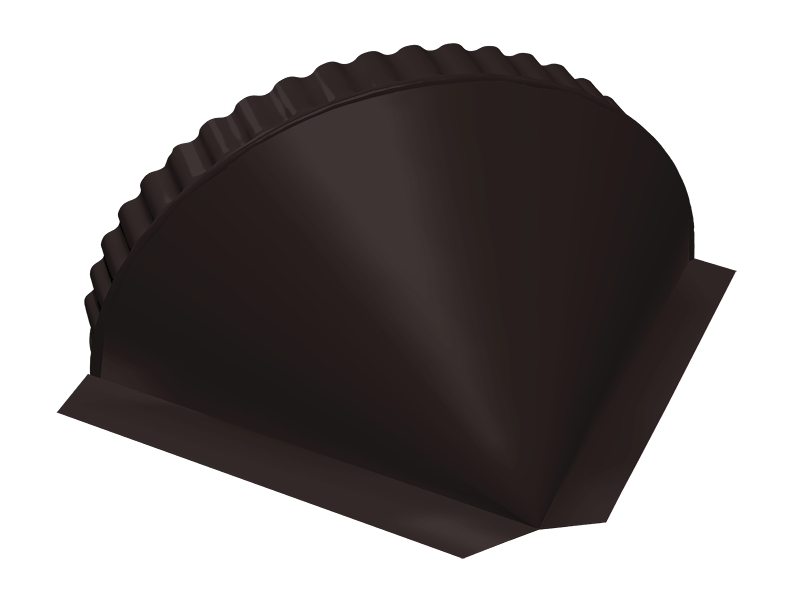 Конусная заглушка полукруглого конька устанавливается на торцах наклонных коньков – хребтов, помимо эстетической функции защищает от задувания в подкровельное пространство снега, дождя, пыли. Заглушка совместима только с полукруглым коньком Grand Line.