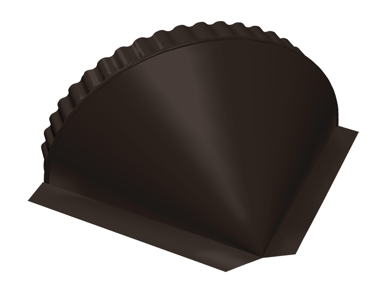 Конусная заглушка полукруглого конька устанавливается на торцах наклонных коньков – хребтов, помимо эстетической функции защищает от задувания в подкровельное пространство снега, дождя, пыли. Заглушка совместима только с полукруглым коньком Grand Line.