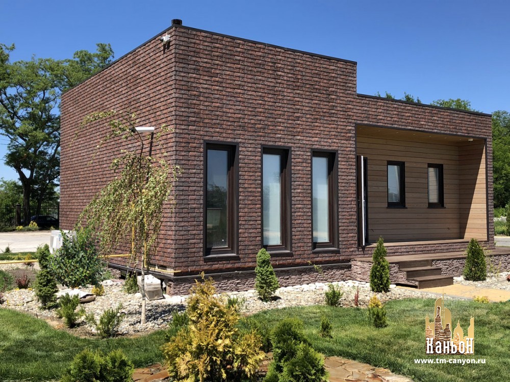 Фиброцементные панели Каньон – уникальный, защищенный многочисленными патентами, фасадный материал. Панели Каньон не требуют «мокрого» монтажа, крепятся механическим способом, благодаря чему монтаж можно производить круглый год. Фактура панелей настолько реалистично имитирует природный камень или кирпич, что даже с близкого расстояния отличить панели Каньон от оригинала практически невозможно.