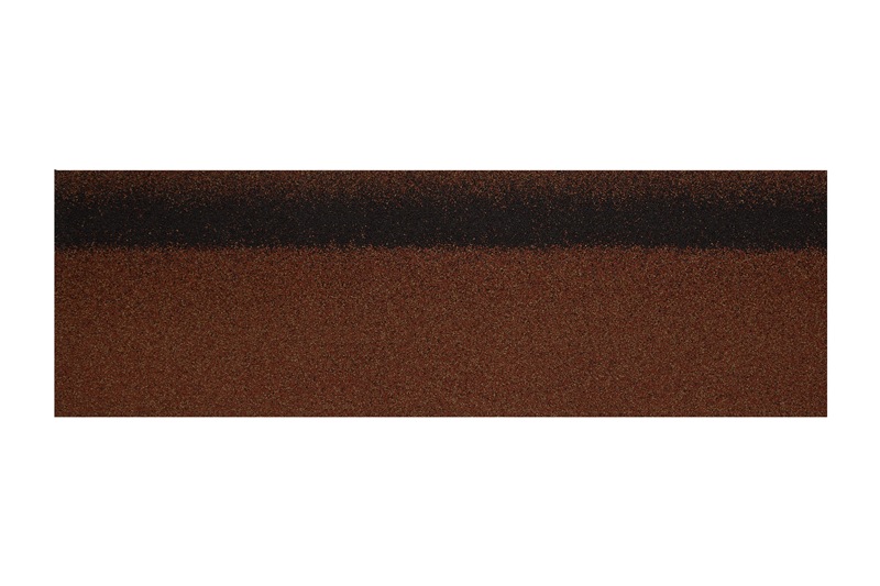 Коньково-карнизная черепица Roofshield изготавливается на основе стеклохолста, пропитанного СБС-модифицированным битумом. В качестве верхнего слоя гонта используют цветные гранулы базальта, на нижней стороне – самоклеящийся слой.