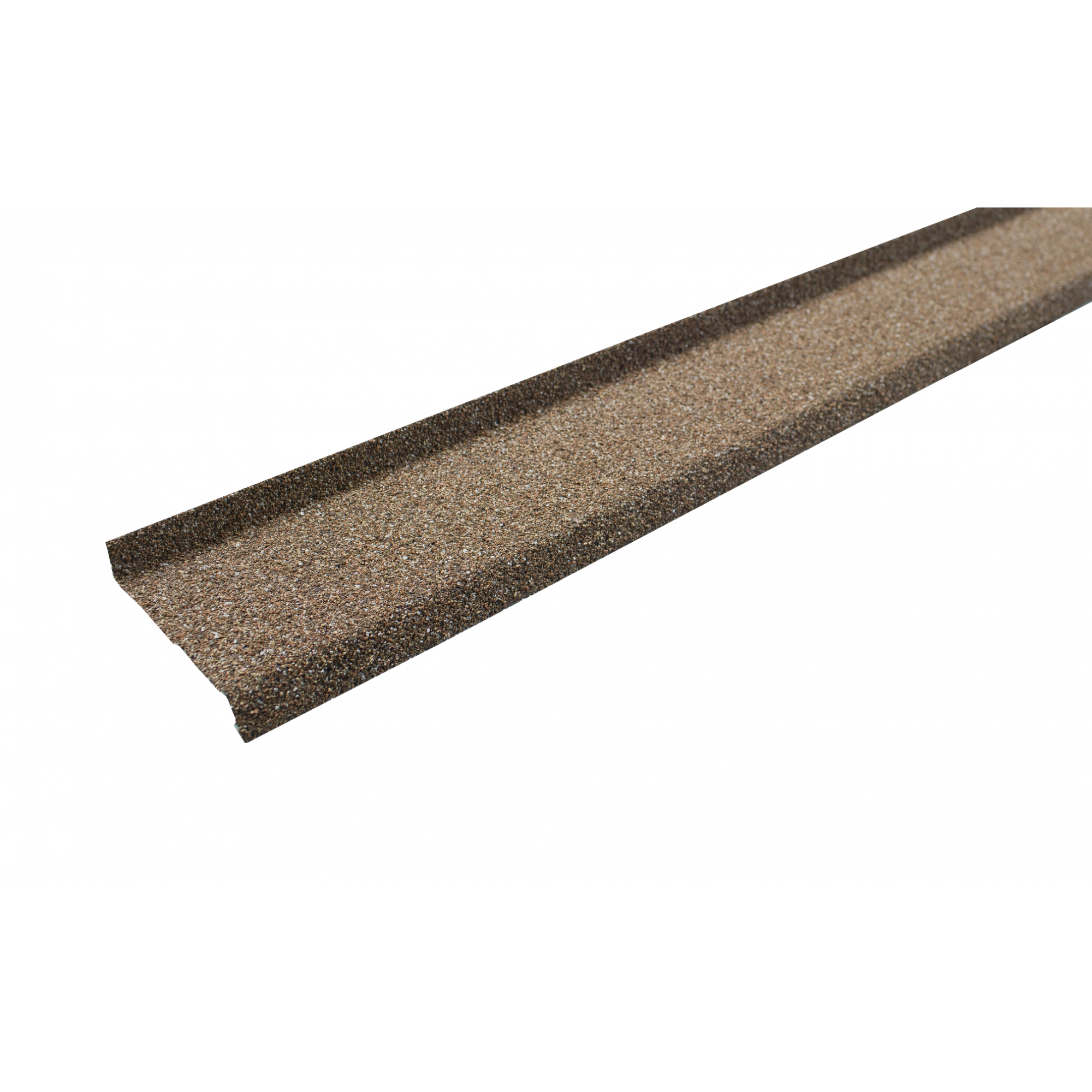 Металлический отлив Хауберк с базальтовой посыпкой под цвет фасадной плитки. Длина элемента 1,25 м.