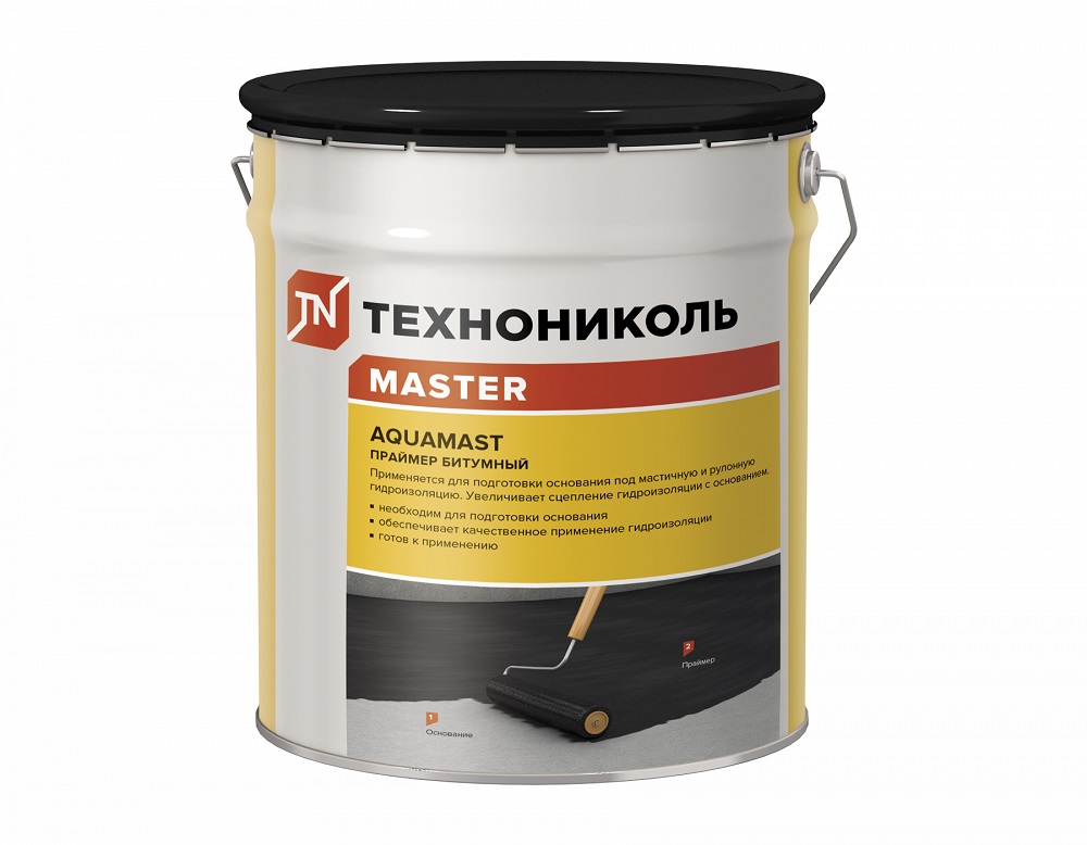 Aquamast – готовый к применению праймер на основе нефтяных битумов и специально подобранных органических растворителей. Обладает высокой проникающей способностью и небольшим временим высыхания. Предназначен для надежного сцепления гидроизоляционных материалов с основанием.